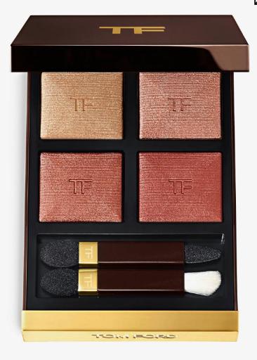 汤姆·福特彩妆系列的人气星品。每款四色眼影盘皆备有四种相融搭配的色号,从前卫大胆、烟熏魅惑、性感迷人至介于两者之间的多种妆效,百搭四色,一盒搞定。配方采用革新色彩处理技术,提供清透闪亮、丝滑光缎、柔焦莹亮至雾色哑光四种奢华妆容。以原真色调与卓越的服贴感,轻松驾驭任何浓度的妆效。
