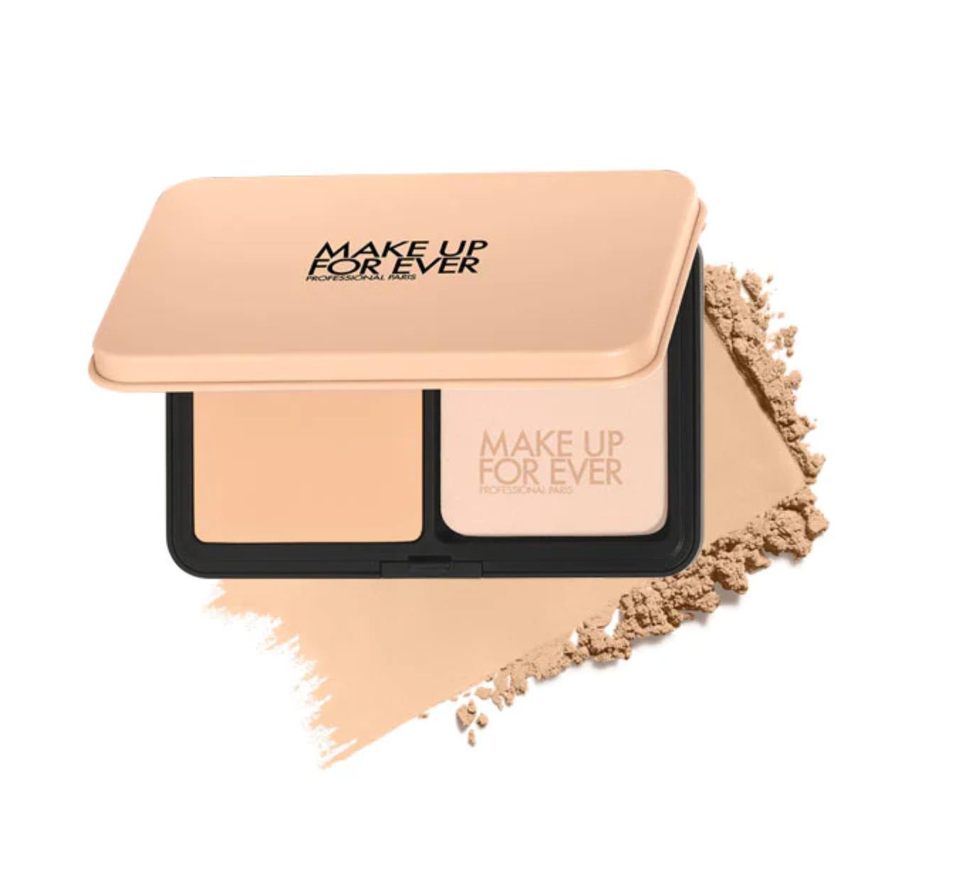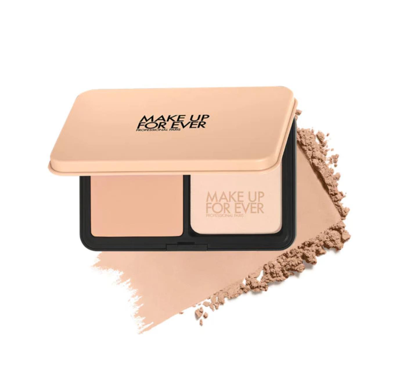 糅合三種不同形狀粉末成份,這款粉餅有效24小時*持續修正、柔焦及維持啞緻底妝。