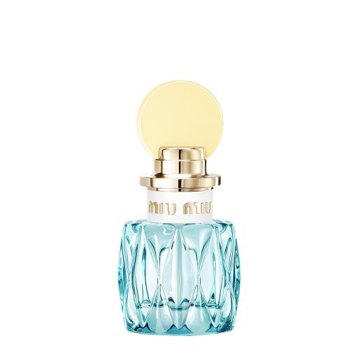 Miu Miu春日花園淡香精瓶身延續了Miu Miu淡香精的經典迷人流線,最著名的matelassé –(小羊皮皺褶處理)瓶身換上了如鑽石藍的透明清澈外衣,粼光閃閃彷彿花園中的清澈流水;白色瓶口上墊子以金色浮雕呈現品牌名稱。瓶蓋由Miu Miu淡香精象徵淘氣的紅色瓶蓋改為如春天溫暖般的鵝黃色,與清澈鑽石藍的瓶身互搭,成就了百花盛開的Miu Miu花園。