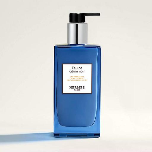 瓶子的直線條飾有代表黑檸檬水的激進深藍色,以及兩個標誌性細節:底座的 H 印記和刻在泵上的 Clou de Selle。
