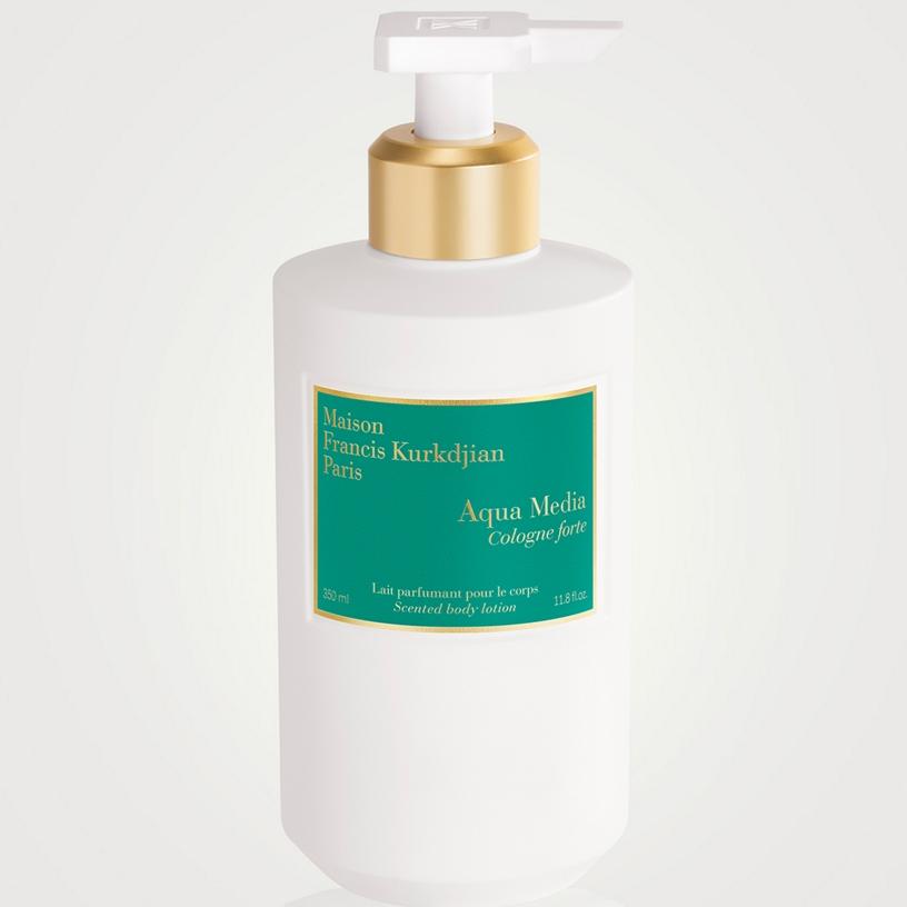 Aqua Media Cologne forte 香氛身体乳液滋润肌肤,散发淡淡的香气,让您的一举一动都散发出芬芳。其轻盈宜人的质地瞬间被肌肤吸收,带来即刻的舒适感。绿色是彩虹的中心色,让人联想到水和光,象征着运动中的平衡。它体现了 Aqua Media Cologne forte 的清新活力,这是一款芳香的柑橘香味,以马鞭草和甜茴香为基调,以木质麝香为基调。