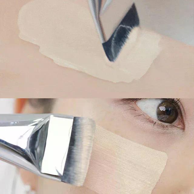 It is applied uniformly without interruption as if applying with a spatula but instead with a flat and wide short-haired brush.