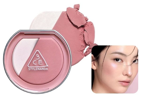 - 3CE blushlighter has a pure priming formula that finishes your makeup with sebum powder-based blush, priming your skin with a flush of color. This new technology blush unites 2 different types, matte & pearl in one packaging.
