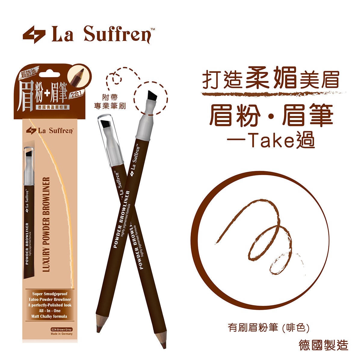 来自德国的崭新技术。超高色质、超贴服,持久且具延展眉毛的效果,尤其适合亚热带和温带的气候环境下使用。