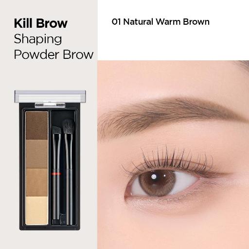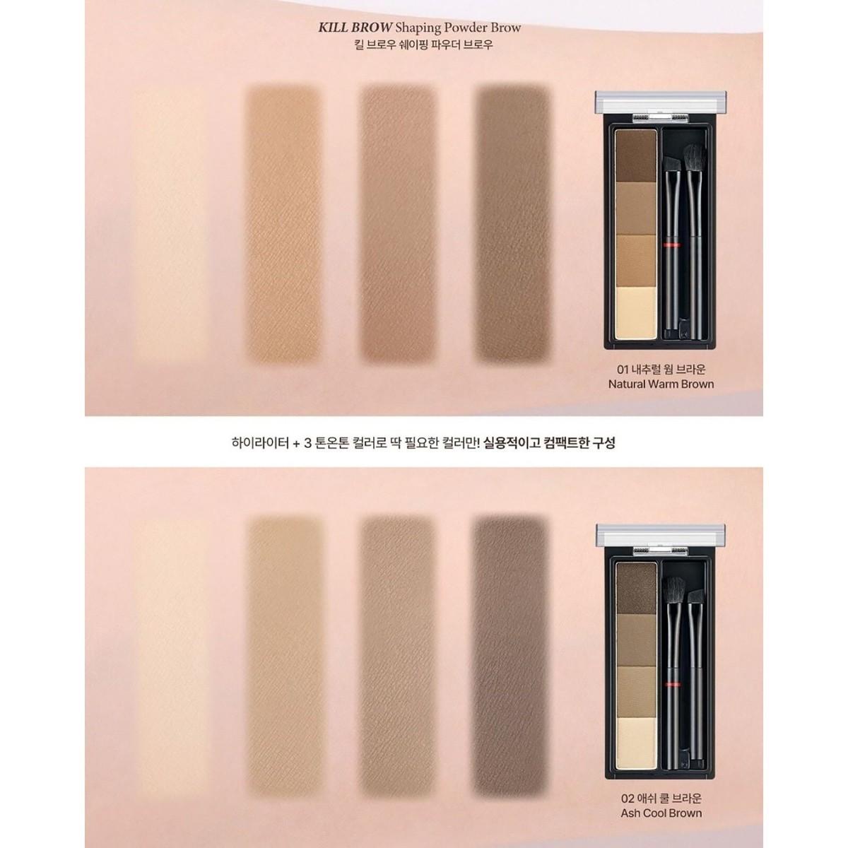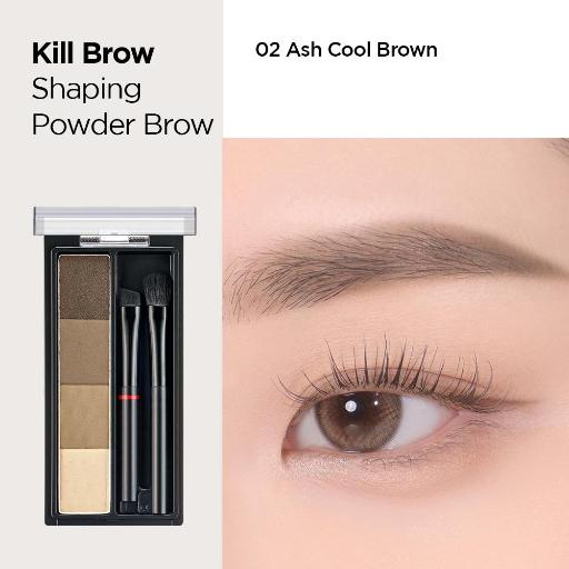 CLIO Kill Brow Shaping Powder Brow allows easy 3D brow shaping with warm and cool finely colored tones and a tone-on-tone 3-color brow and highlighter applied with a brush.
