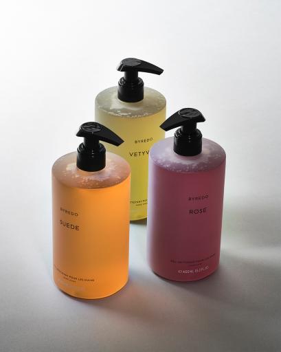 BYREDO's hand care line unites pleasure and function, eloquently enhancing the most habitual of gestures with fragrance. The latest addition to BYREDO s body care collection features a trio of complimentary products, Hand Wash, Hand Lotion and Hand Cream, offered in 2 sublime scents, Vetyver and Suede. Each product combines one of BYREDO s new scents with a light yet nourishing texture, allowing you to gently cleanse, hydrate and soften the hands whilst divinely scenting them, throughout the day.
