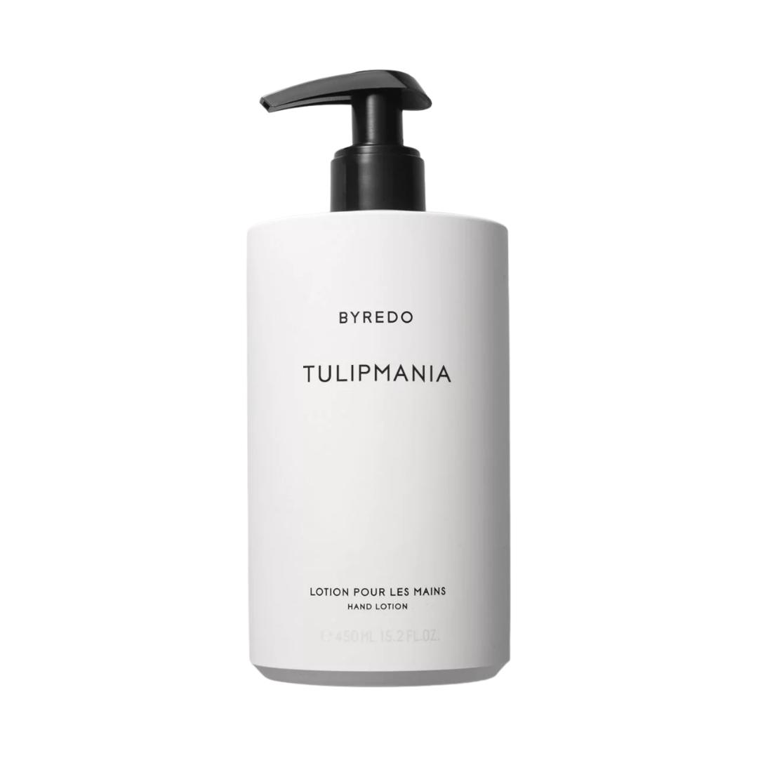 Byredo 推出了 Tulipmania,一款新的手部护理香水,灵感来自历史现象,也被称为“郁金香热”,一种对郁金香球茎的投机狂热。
