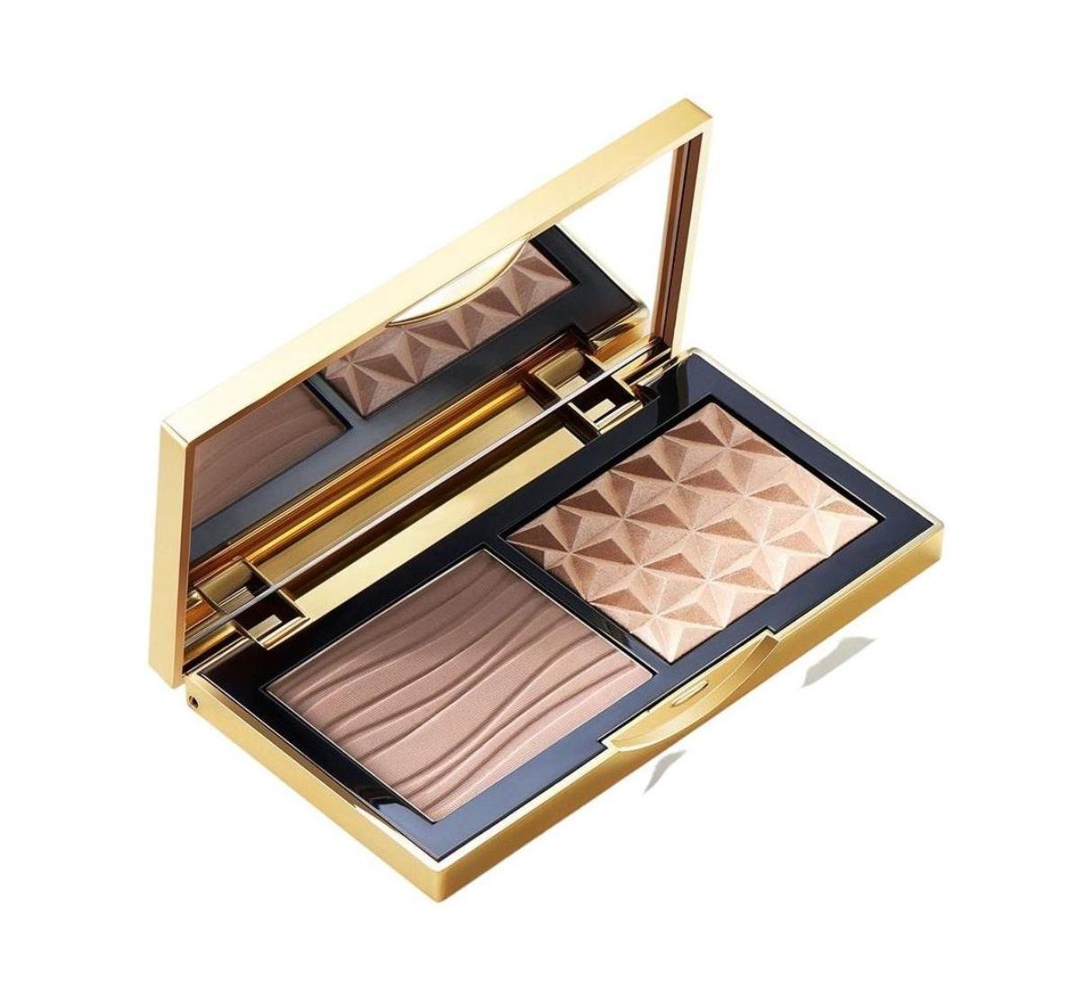 聚光塑影 一盘立体「小金盒」高光修容盘。生姜高光DOUBLE GLEAM——香槟细闪,黄皮本命,水感清透,缎光流转,细腻服帖不显毛孔,时刻心机闪耀。绝妙灰调修容色OMEGA——自然灰棕,精雕骨相,鼻影 • 侧影 • 深邃眼窝,极细粉质新手友好,一扫成型0失手。